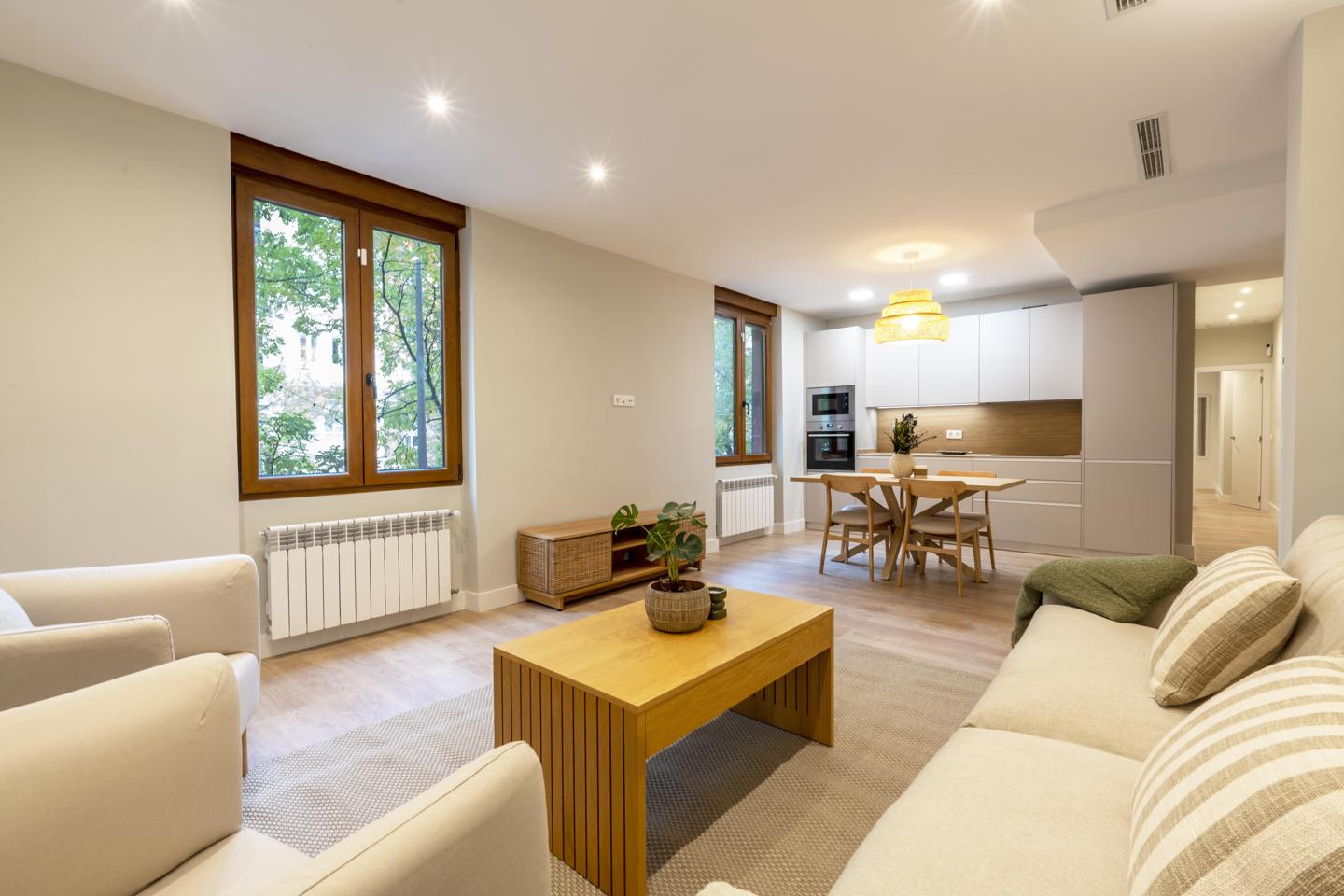 Sevendays presenta este piso totalmente exterior ubicado en una de las zonas más exclusivas del Barrio de Salamanca. La vivienda cuenta con 2 dormitorios en suite, ambos con armarios empotrados de gran capacidad, ofreciendo privacidad y comodidad. Dispone de 2 baños en suite y 1 aseo de cortesía independiente, completando una distribución práctica y equilibrada. La vivienda combina diseño contemporáneo, materiales de alta calidad y una distribución muy funcional. Sus siete ventanales garantizan luz natural durante todo el día, aportando amplitud y confort a cada estancia. La reforma integral, recién finalizada, incluye suelos de madera natural, carpintería a medida, cocina abierta con electrodomésticos premium y baños de diseño con revestimientos de gran formato e iluminación indirecta. El salón-comedor, de más de 30 m², es amplio y elegante, ideal tanto para el día a día como para recibir invitados. La finca dispone de portero físico residente, ofreciendo seguridad y atención diaria.